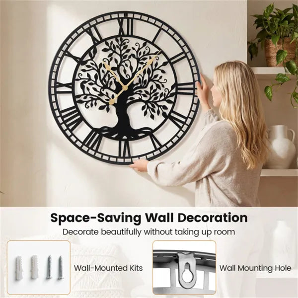 * Tree of Life Artistic Design: Elevate your home's ambiance with this decorative wall clock featuring a beautifully crafted tree of life motif encased in a sleek metal frame. It inspires harmony and a sense of renewal in your space.