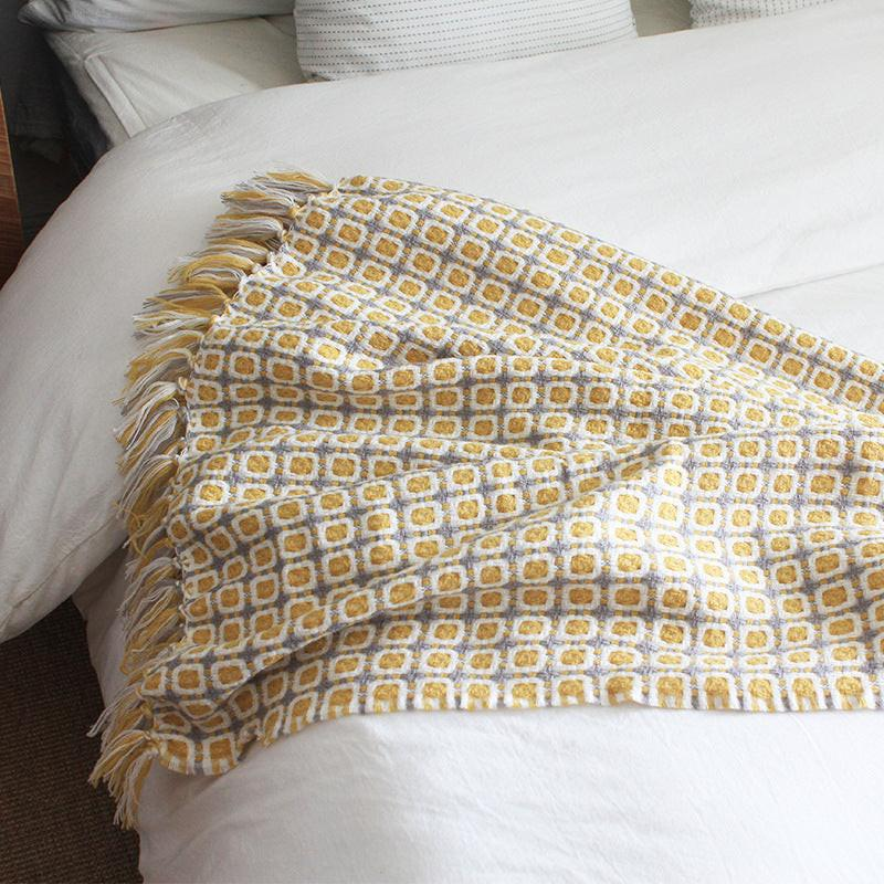 Experience the luxurious elegance of our Pastoral Style Yellow Knitted Woolen Blanket, featuring a timeless Houndstooth pattern that adds sophistication to any space. Whether draped over furniture or spread across your bed, this Bohemian-inspired blanket offers unparalleled comfort and style. Handwoven to perfection on a wooden loom by skilled artisans, each blanket showcases meticulous craftsmanship and superior quality. Embrace the cozy warmth and charm of its exquisite design and transform your home into a haven of relaxation. The soft and cozy woven fabric will wrap you in comfort, providing a luxurious feel against your skin.